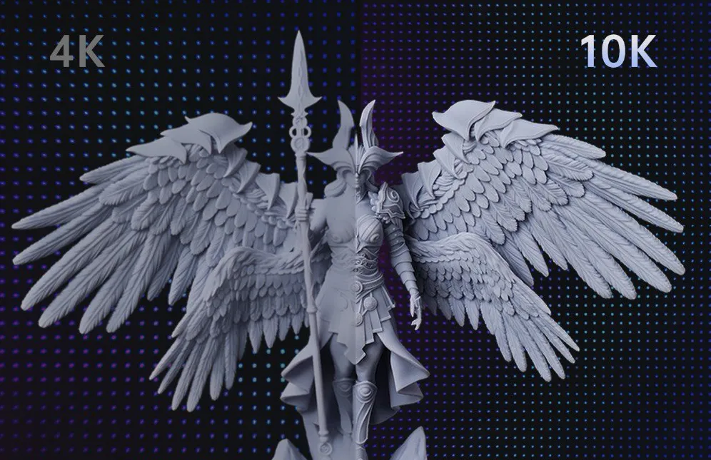 - Ювелирная детализация — разрешение 10K с пикселем всего 17×17 мкм для идеальных краев и мельчайших деталей
