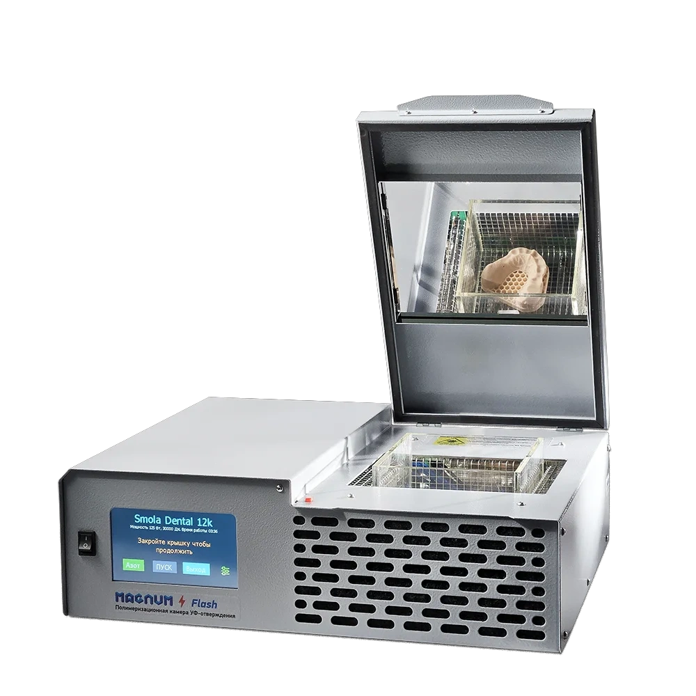 УФ камера Magnum Dental Flash предназначена преимущественно для стоматологических лабораторий использующих в своей работе 3Д печать и нуждающихся в высококачественном отверждении напечатанных деталей.