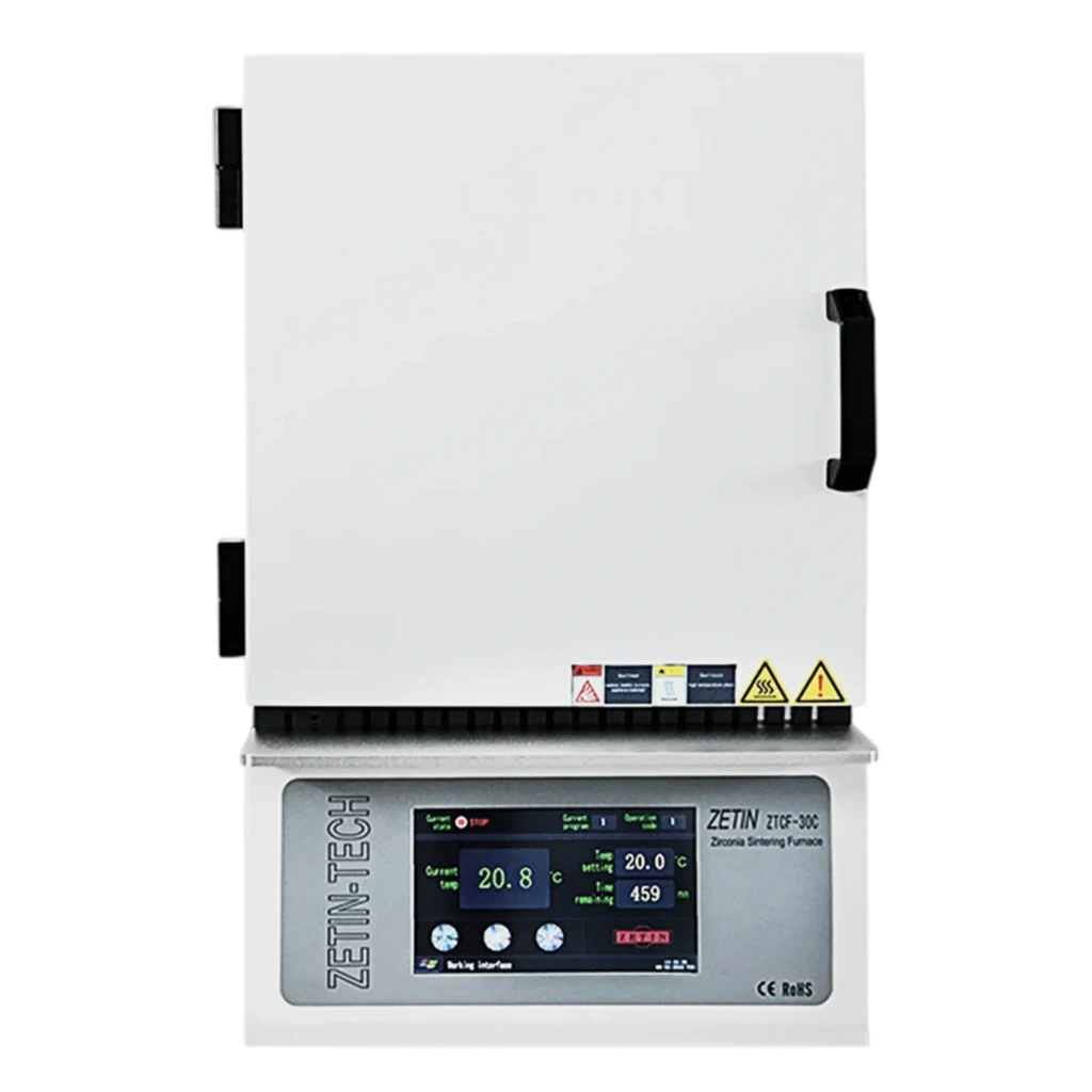 Zetin ZTCF-30B Mini — компактная печь для синтеризации циркония с интеллектуальным управлением и точным температурным контролем ±1°C. Обеспечивает качественную термообработку циркониевых заготовок при температуре до 1730°C с равномерным обжигом и возможностью обработки до 80 единиц за цикл. Предназначена для стоматологических лабораторий с ограниченным пространством, изготавливающих коронки, мосты и другие ортопедические конструкции с высокой точностью и повторяемостью результатов.